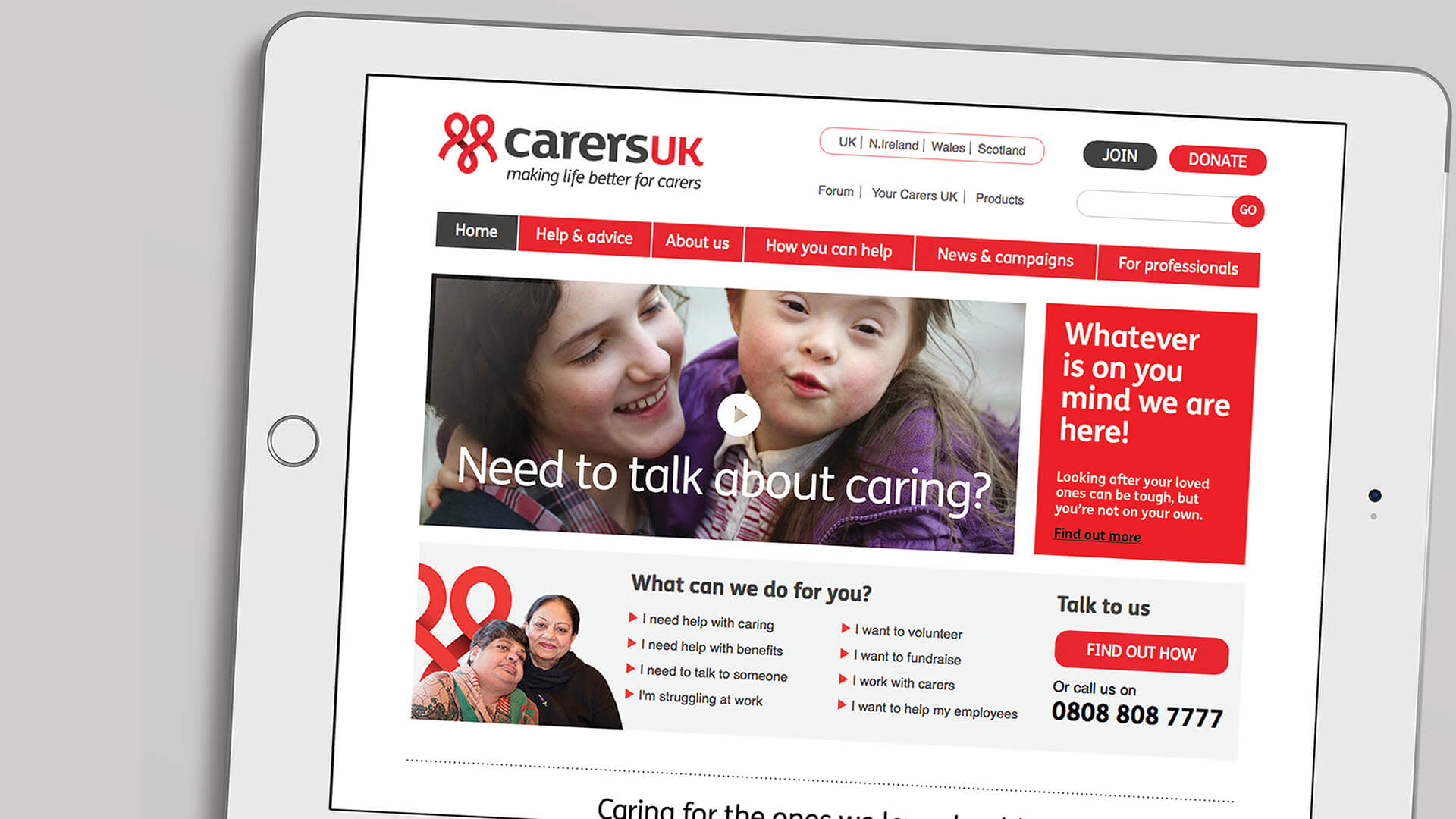 Uffindell was commissioned to work alongside the Carers UK Leadership team to define the brand strategy and create a distinctive and compelling brand identity.