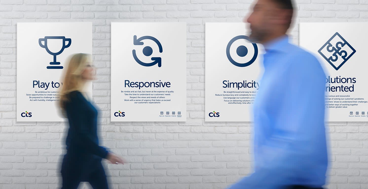 The project began with an in-depth knowledge gathering exercise where the design team were immersed in the new CTS Brand strategy and the background of the organisation. We were able to gain a good understanding of priorities, requirements, restrictions and potential issues with the implementation of the new brand.
