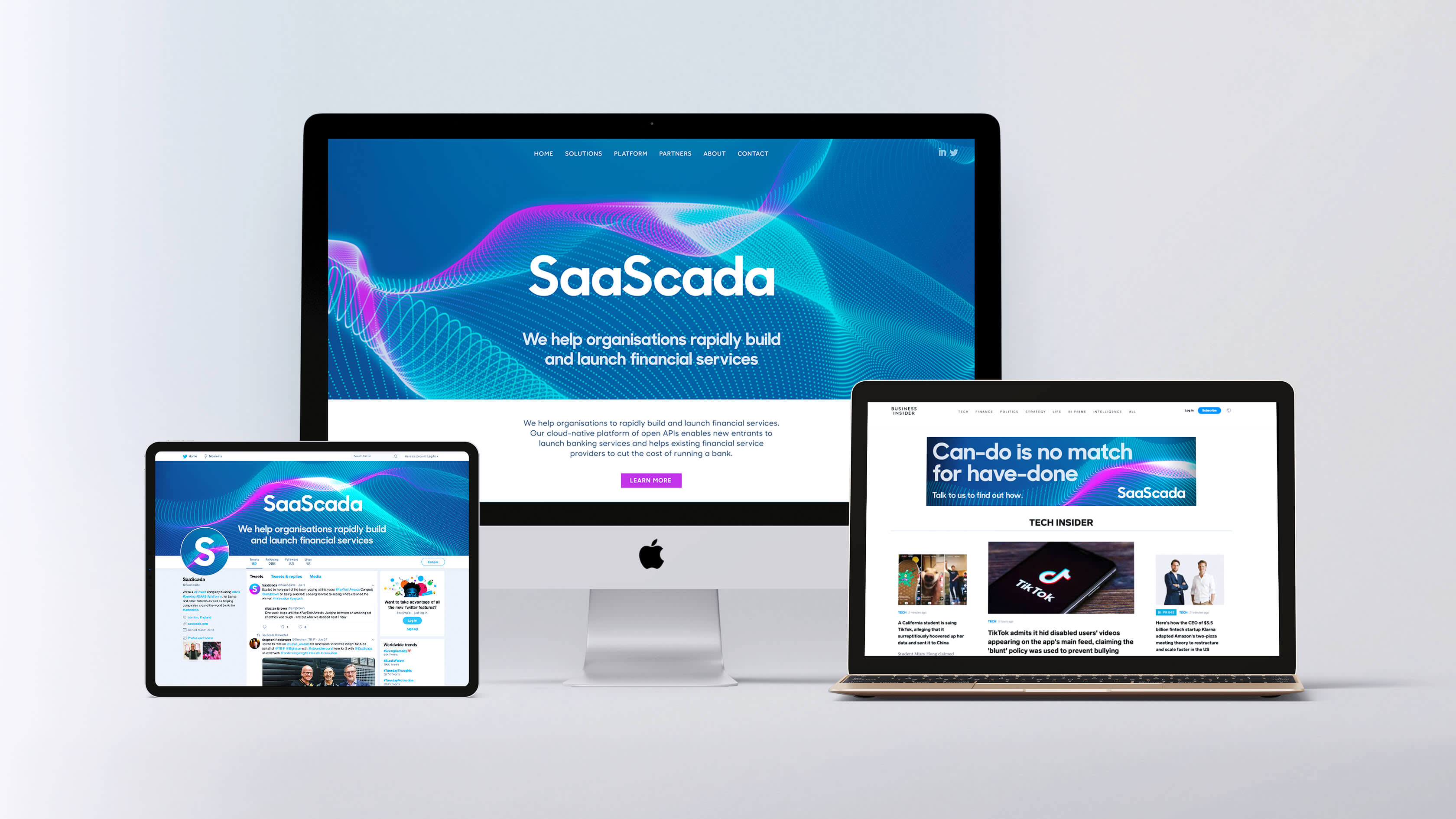 Uffindell was commissioned to create the new brand identity for SaaScada: a B2B Banking Software-as-a-Service (SaaS) platform which enables financial institutions to rapidly build and launch retail banking services at a price that is accessible to even the smallest organisations.